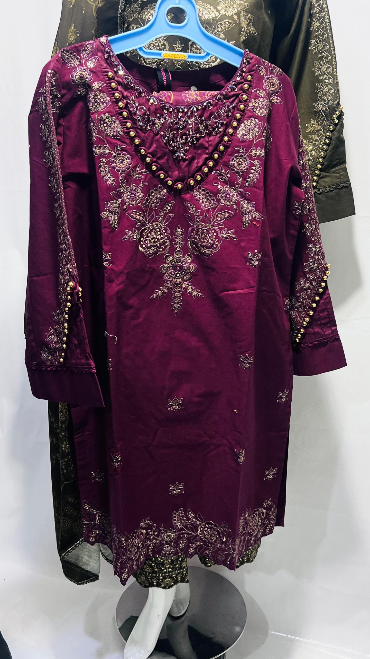 Yeh Silk Rang ka maroon embroidered cotton kurta premium quality cotton fabric se tayar kiya gaya hai, jo soft, breathable aur comfortable hai. Is par ki gayi fine embroidery is kurta ko elegant aur classy look deti hai.